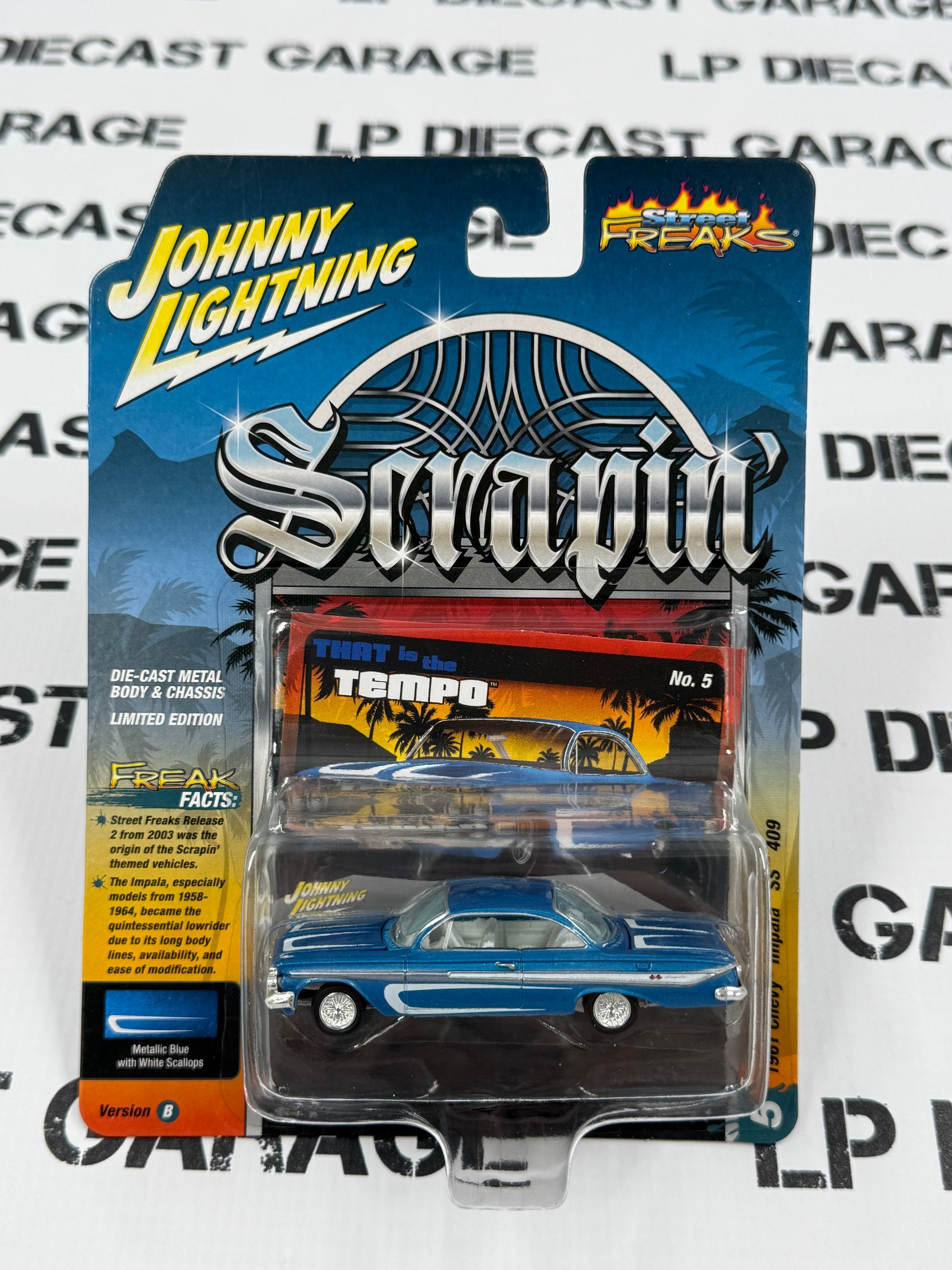 JOHNNY LIGHTNING 1961 Chevy Impala SS 409 Blue Lowrider 1:64 Diecast Scrapin