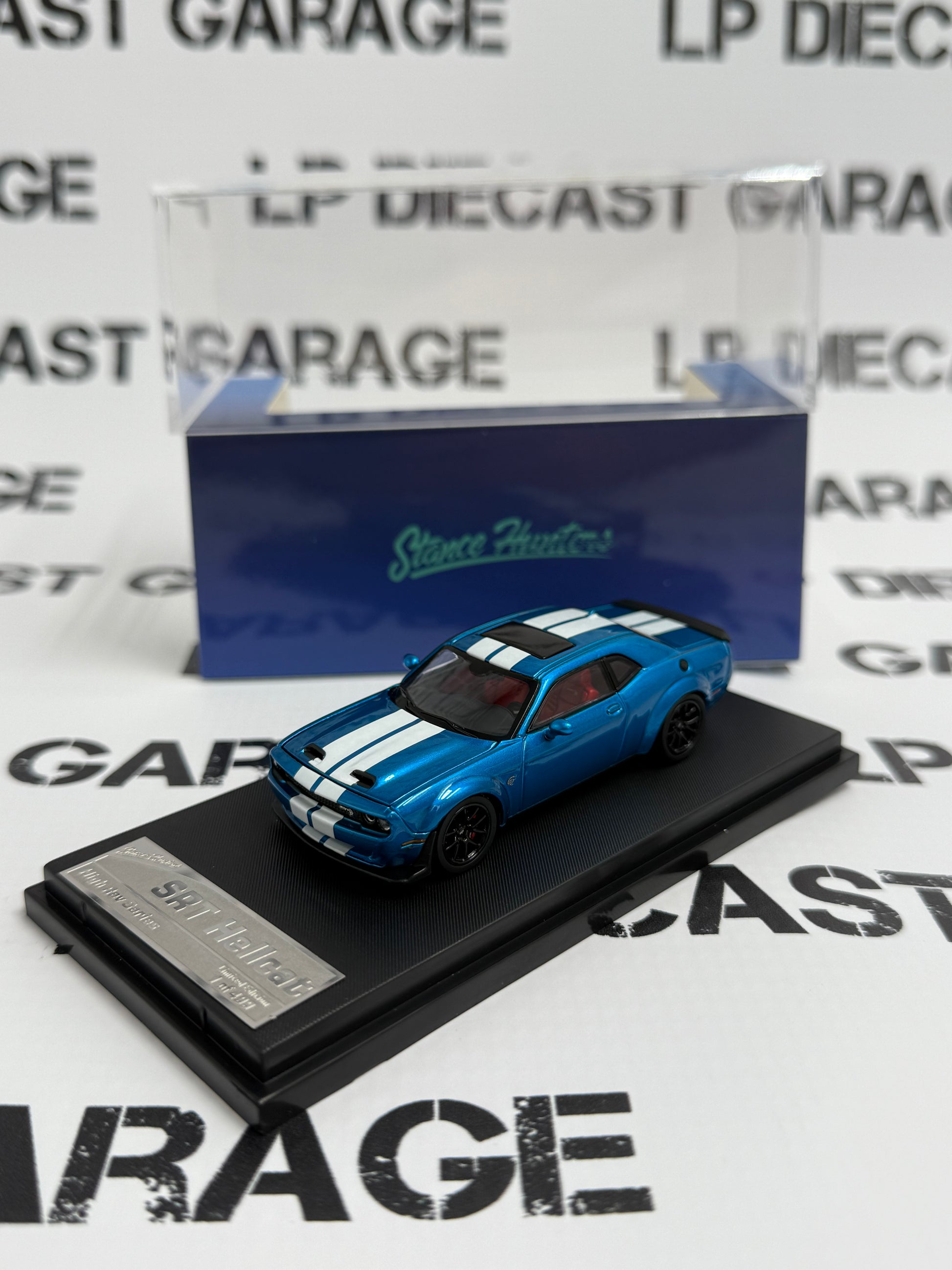 STANCE HUNTERS 2023 Dodge Challenger SRT Hellcat Blue w/White Stripes 1:64 Diecast