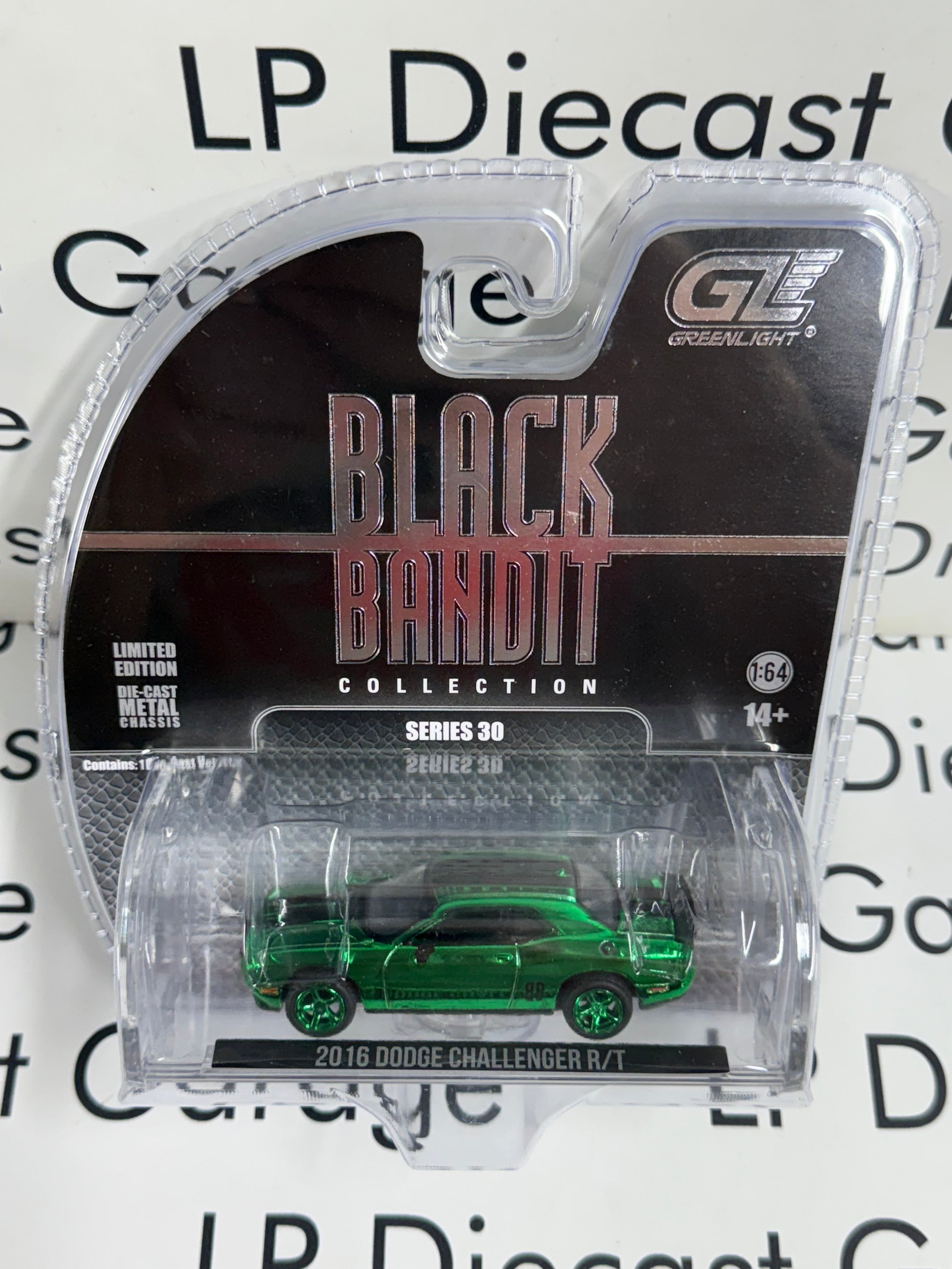 GREEN MACHINE CHASE GREENLIGHT 2016 Dodge Challenger R/T 1:64 Diecast Black Bandit