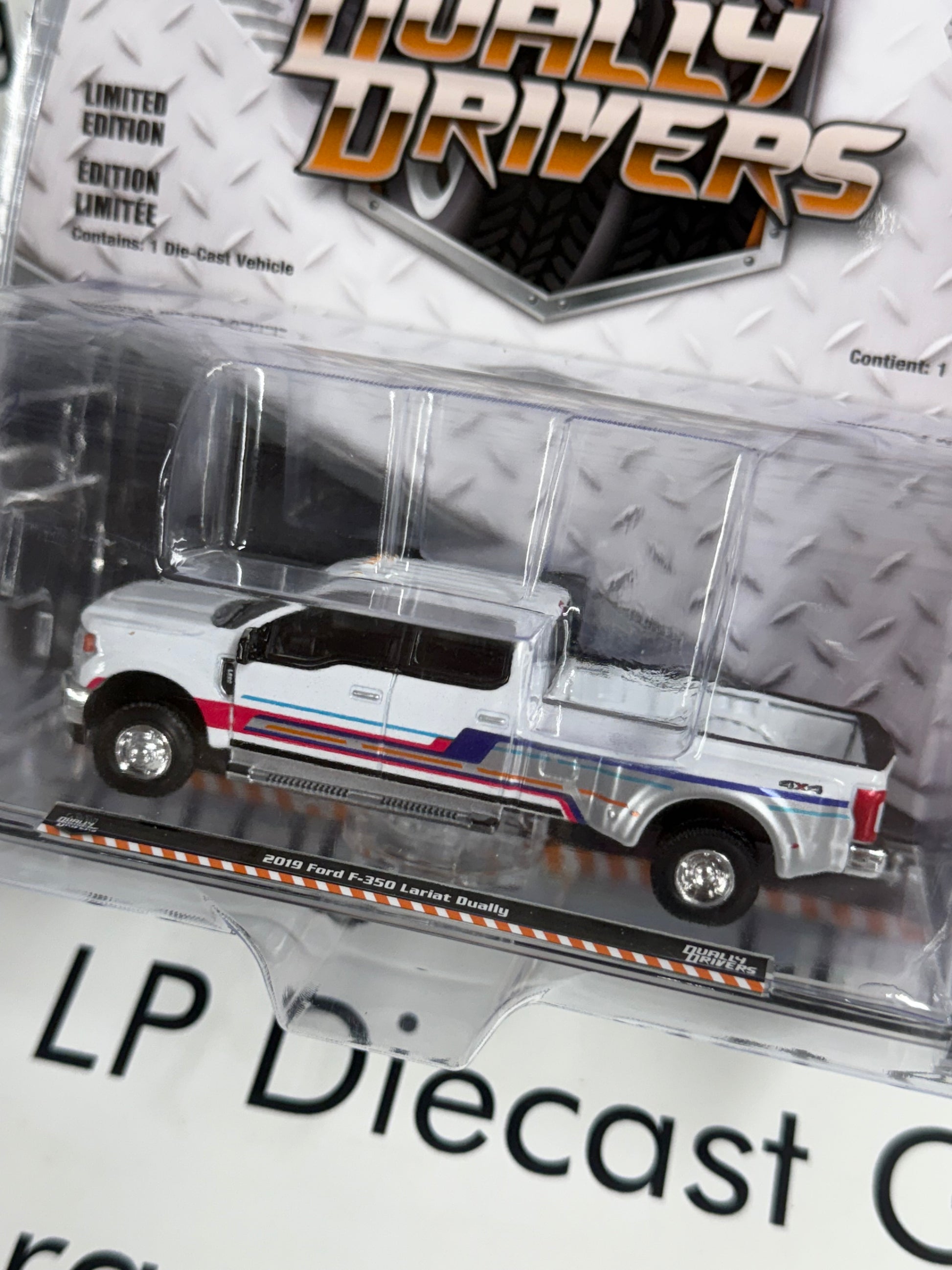 GREENLIGHT 2019 Ford F-350 Lariat White w/ Decals 1:64 Diecast Dually Drivers