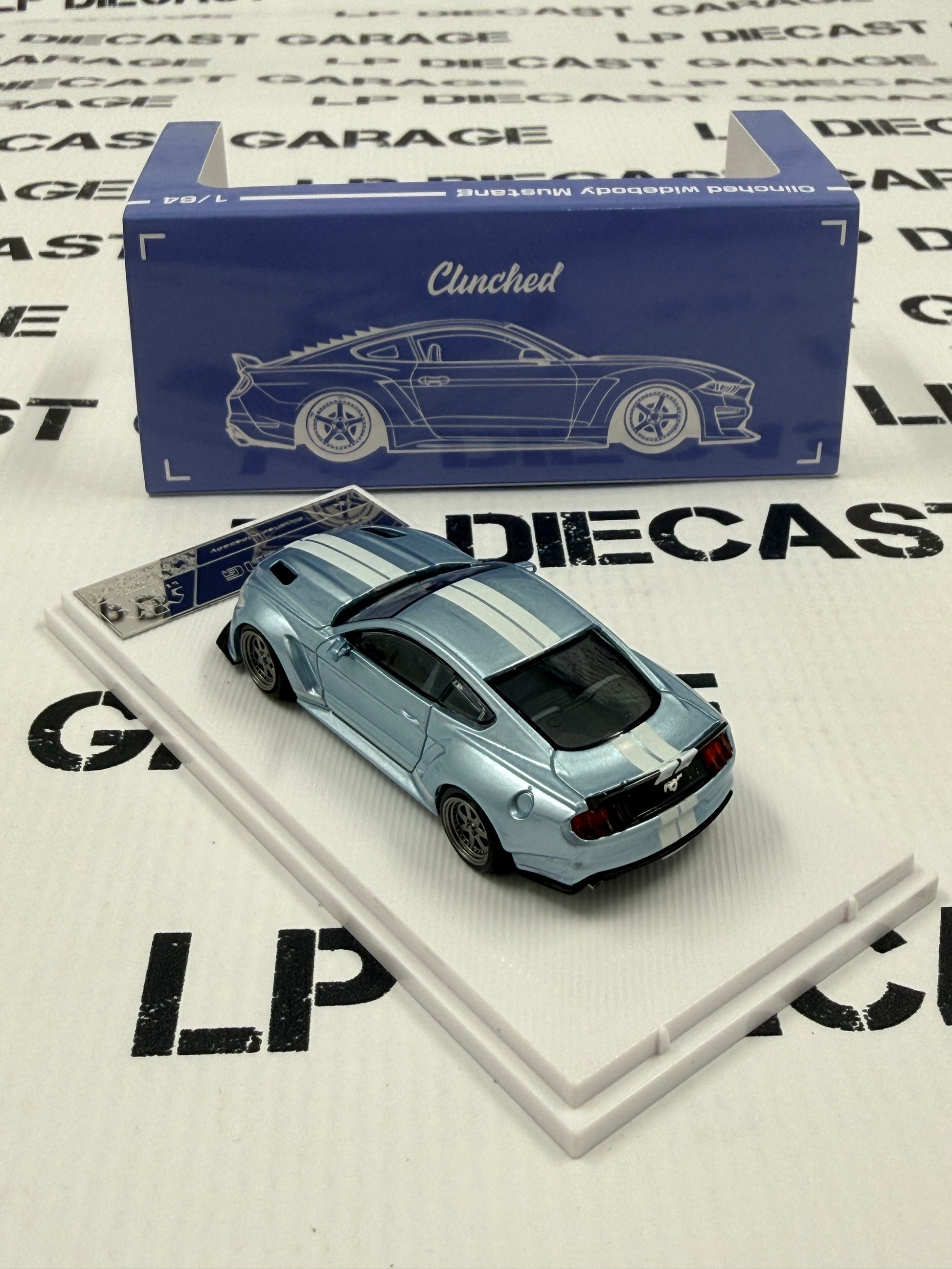 LIBERTY64 Ford Mustang Clinched Light Blue w/ White Stripes 1:64 Diecast Ghost Player