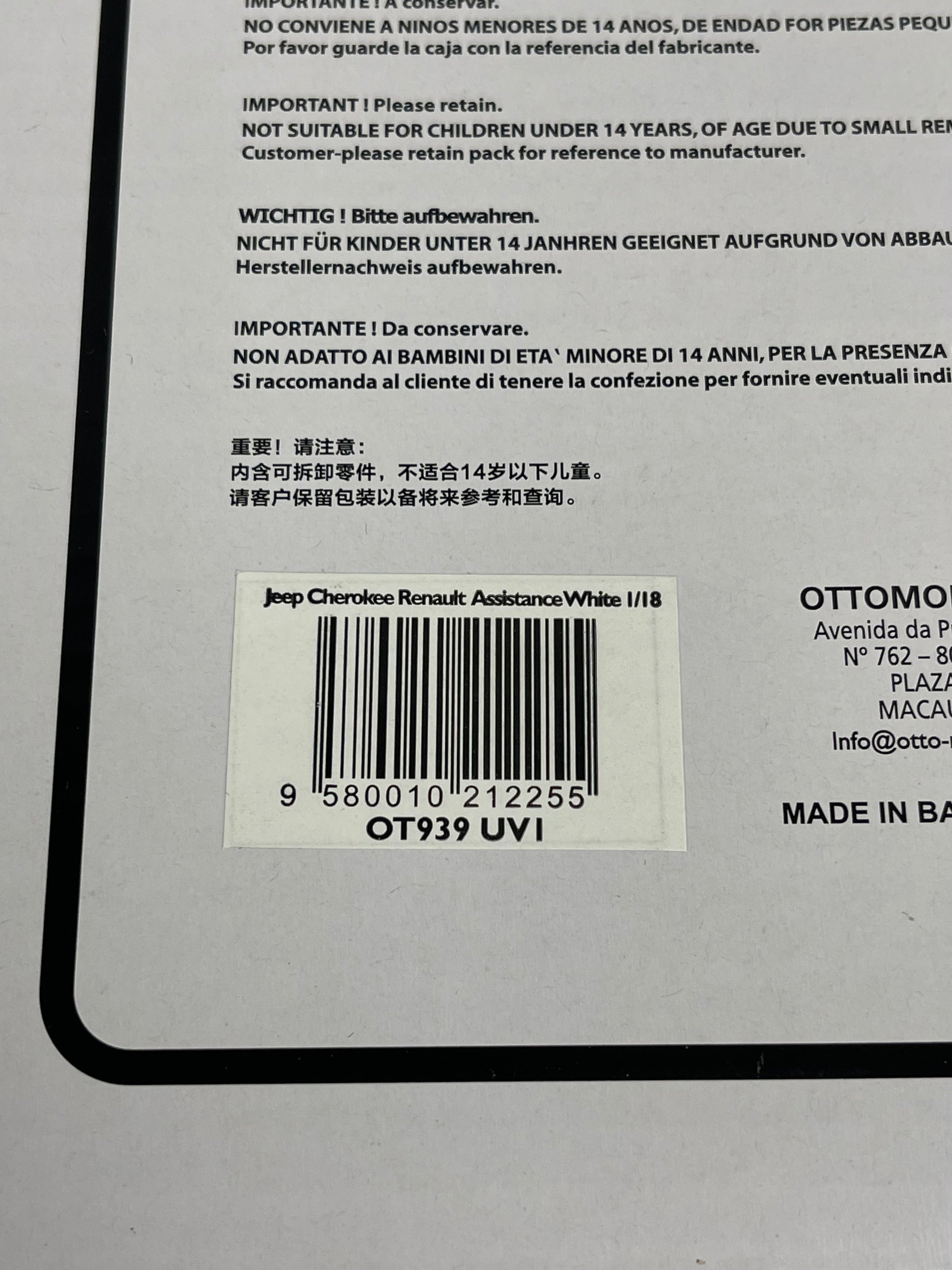 OTTO MOBILE Jeep Cherokee XJ Renault Assistance White 1:18 Scale Resin Model OT939